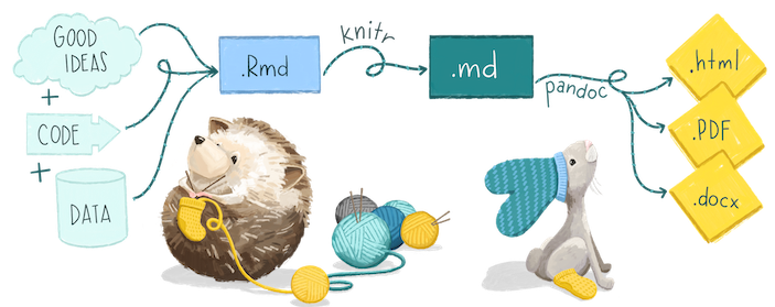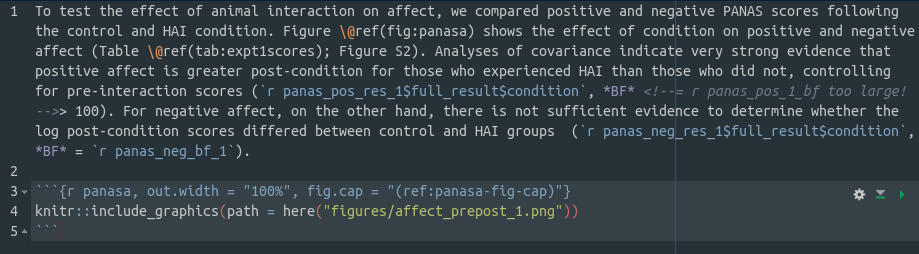 Type “The mean of the first 9 digits is `r mean(1:9)`.”